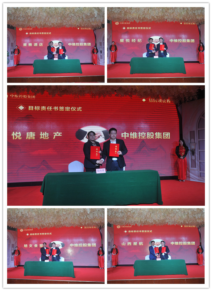 而后,集團公司分別與悅唐地產(chǎn)、星悅經(jīng)紀、星雅酒店、培文食堂、山西星航等單位簽署2021年度目標管理責任書;相應單位負責人進行了表態(tài)發(fā)言,大家紛紛表示,在2021年,一定身先士卒、團結(jié)奮進、努力拼搏,向集團交上一份滿意的答卷!