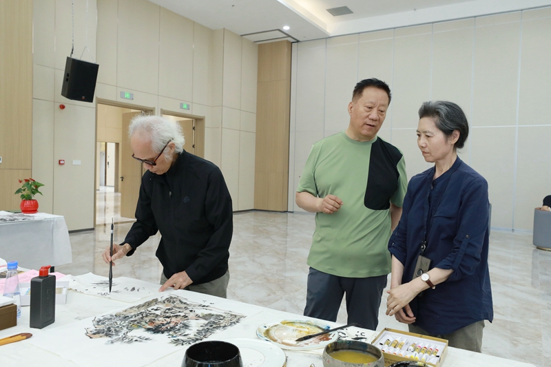大師們沉浸創(chuàng)作,觀者屏息凝神??諝庵袕浡闩c專注,每一次落筆都引來由衷贊嘆,充分展現(xiàn)了中華書畫藝術(shù)的獨特魅力與勃勃生機。
