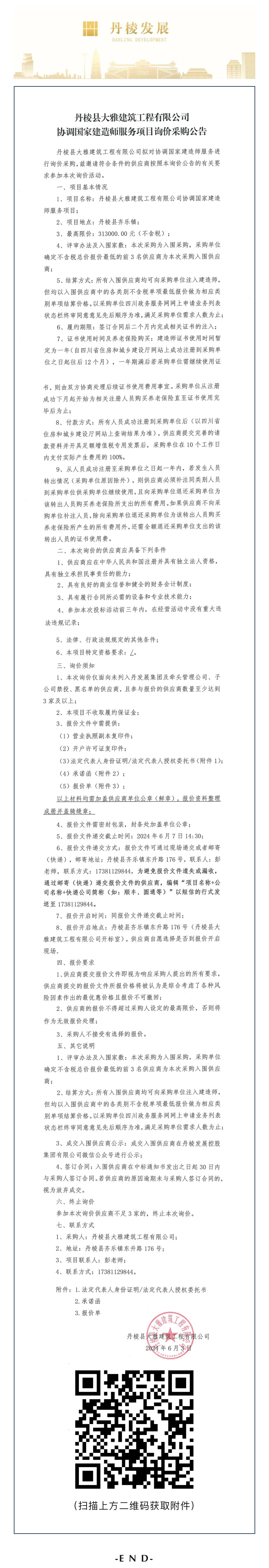 丹棱縣大雅建筑工程有限公司協(xié)調(diào)國家建造師服務項目詢價采購公告