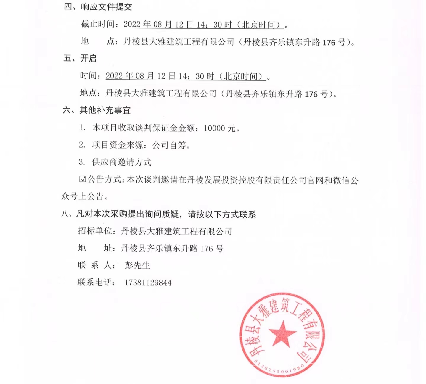 丹棱縣食品園區(qū)建設(shè)項目(一期)--丹棱凍粑產(chǎn)業(yè)園建設(shè)項目設(shè)計、施工、采購總承包(EPC)消防工程專業(yè)分包項目競爭性談判公告