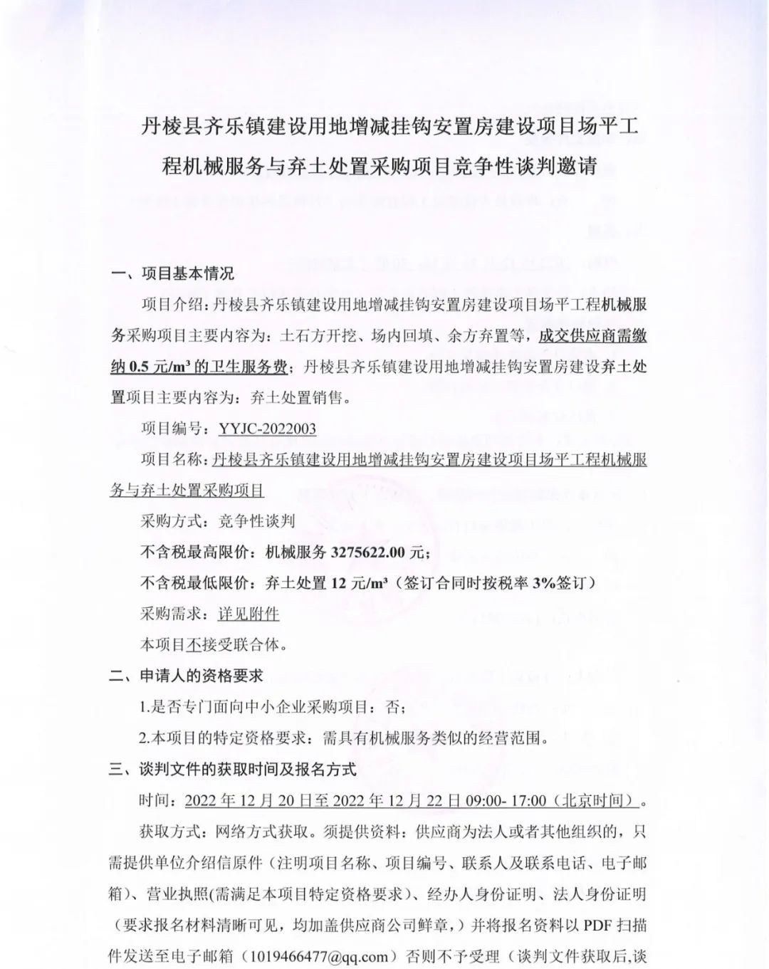 丹棱縣齊樂鎮(zhèn)建設(shè)用地增減掛鉤安置房建設(shè)項(xiàng)目場平工程機(jī)械服務(wù)與棄土處置采購項(xiàng)目競爭性談判邀請