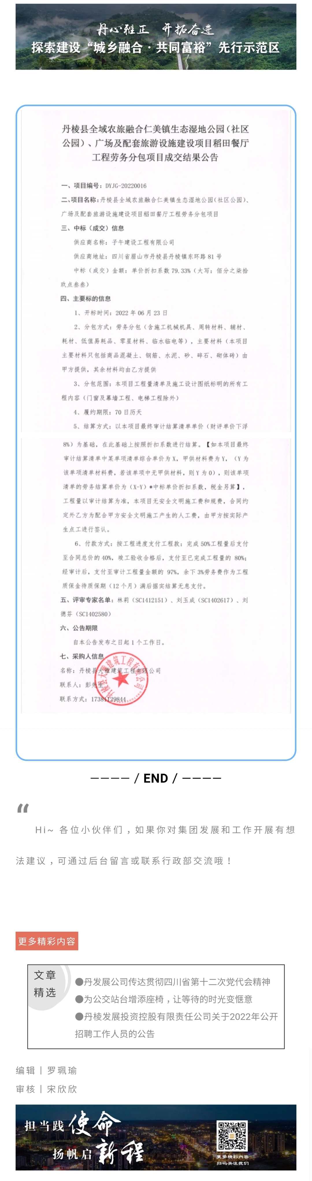 丹棱縣全域農(nóng)旅融合仁美鎮(zhèn)生態(tài)濕地公園(社區(qū)公園)、廣場及配套旅游設(shè)施建設(shè)項(xiàng)目稻田餐廳工程勞務(wù)分包項(xiàng)目成交結(jié)果公告