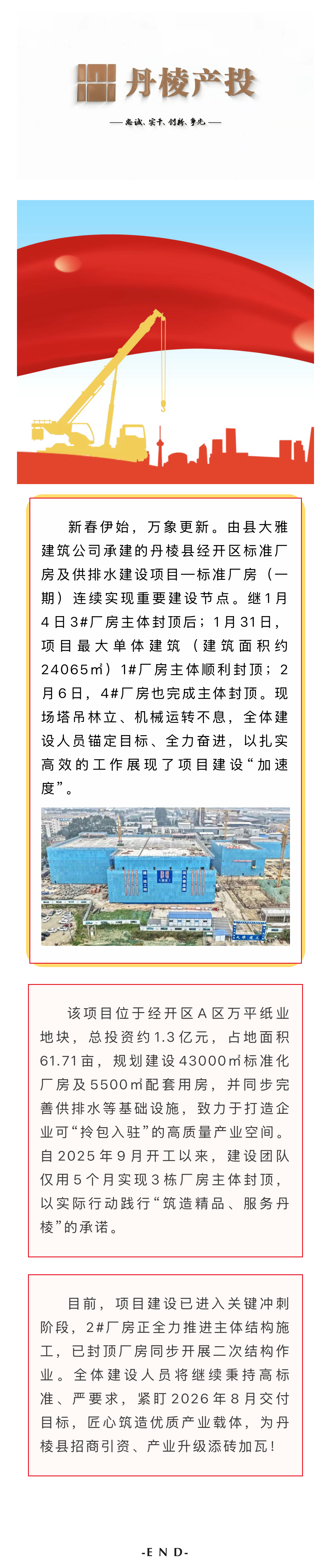 【縣大雅建筑公司】筑跡:丹棱縣經(jīng)開區(qū)標(biāo)準(zhǔn)廠房及供排水建設(shè)項(xiàng)目—標(biāo)準(zhǔn)廠房(一期)捷報(bào)頻傳,多棟廠房相繼封頂