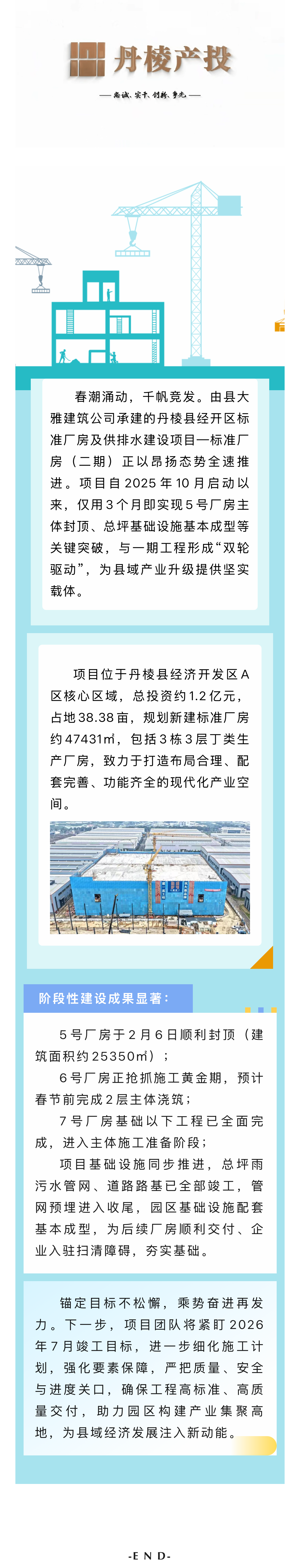 【縣大雅建筑公司】筑跡:乘勢(shì)而上再提速 丹棱縣經(jīng)開區(qū)標(biāo)準(zhǔn)廠房及供排水建設(shè)項(xiàng)目—標(biāo)準(zhǔn)廠房(二期)全面攻堅(jiān)​