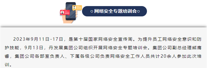 【網(wǎng)絡(luò)安全宣傳周】 丹發(fā)展集團(tuán)公司開展網(wǎng)絡(luò)安全專題培訓(xùn)會