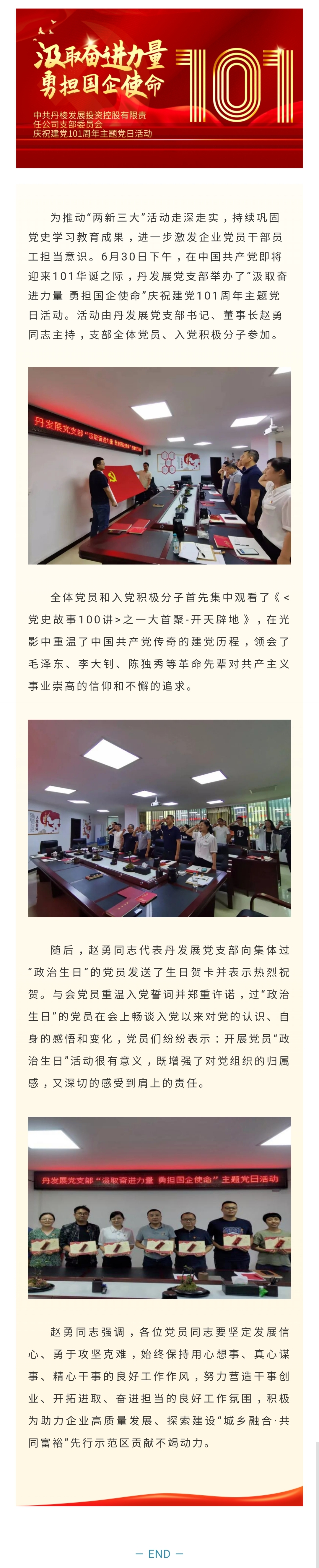 中共丹棱發(fā)展投資控股有限責(zé)任公司支部委員會(huì)“汲取奮進(jìn)力量 勇?lián)鷩?guó)企使命”慶祝建黨101周年主題黨日活動(dòng)